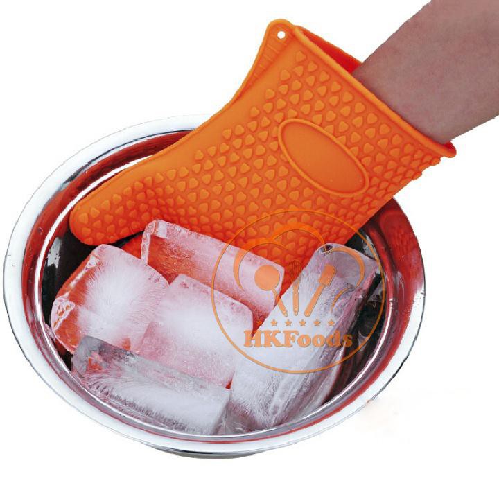 Làm bằng silicon an toàn cho người sử dụng, kích thước 27x15cm rất vừa phải.Găng tay chịu nhiệt độ từ -30C đến +235C ( tức chịu nhiệt độ thoải mái từ đá và các loại nước sôi, thịt nướng trên bếp…)