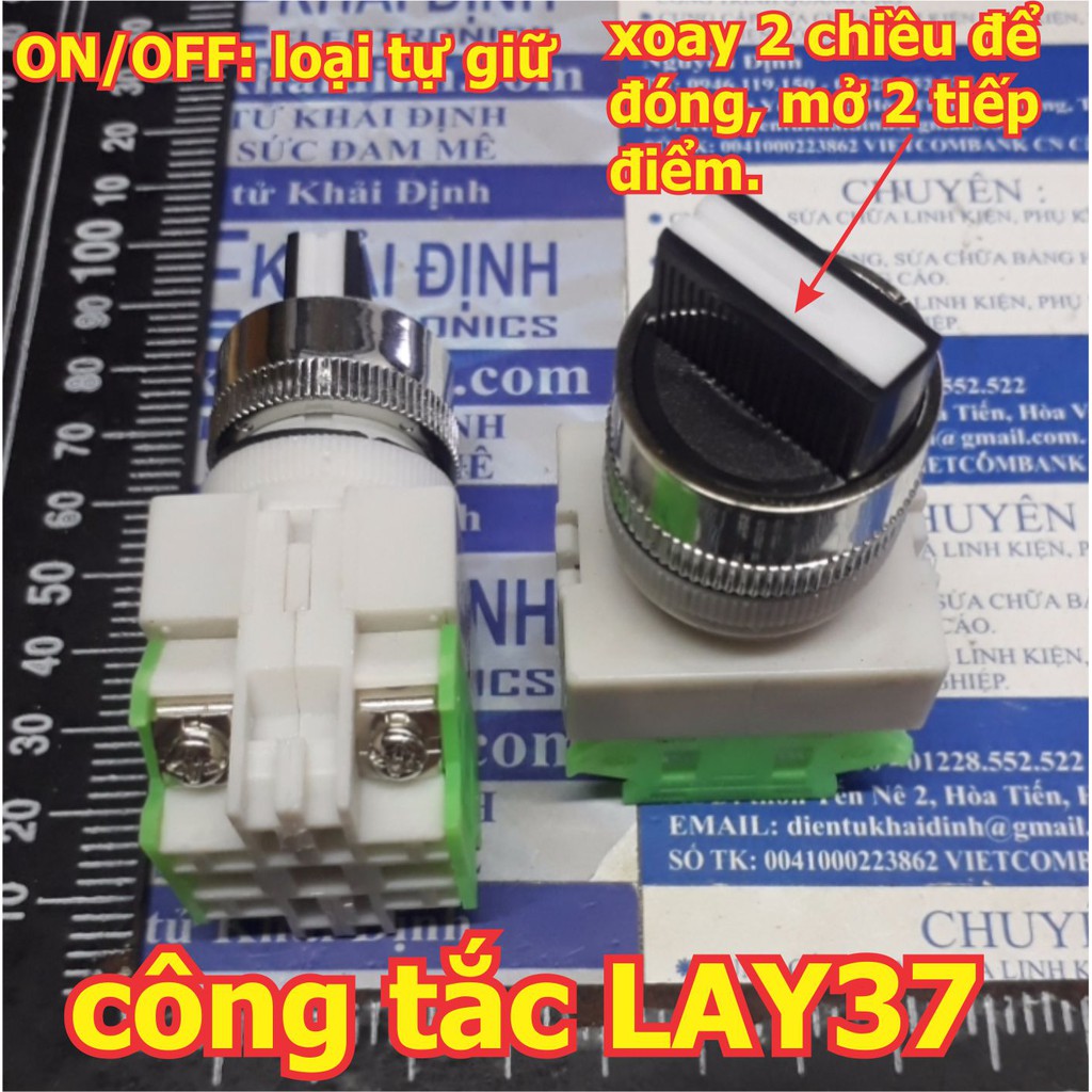 Giới thiệu 2 cái Công tắc xoay tủ điện ON/OFF, tự giữ LAY37 Y090, 2 chiều, 2 thường mở, phi 22mm kde5610