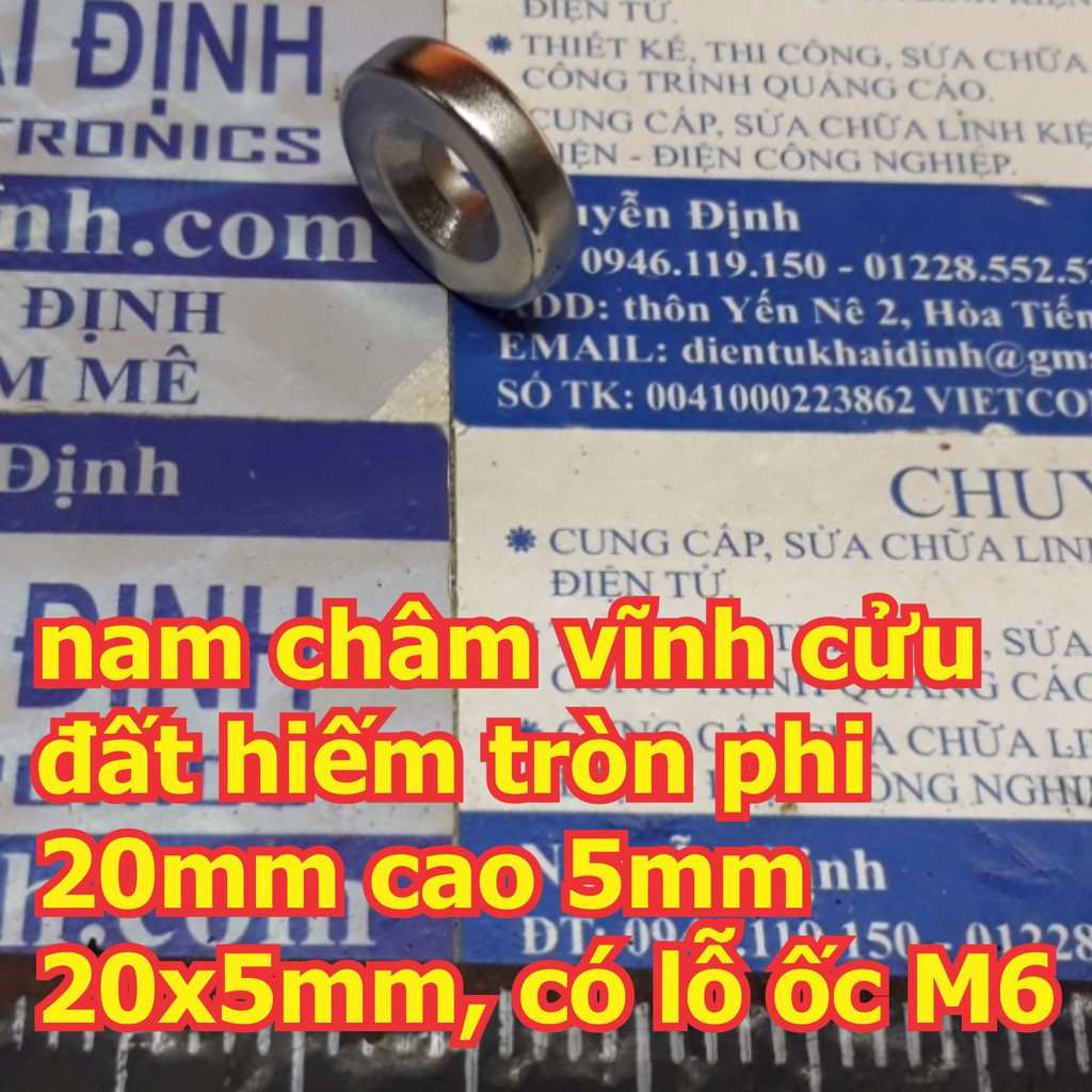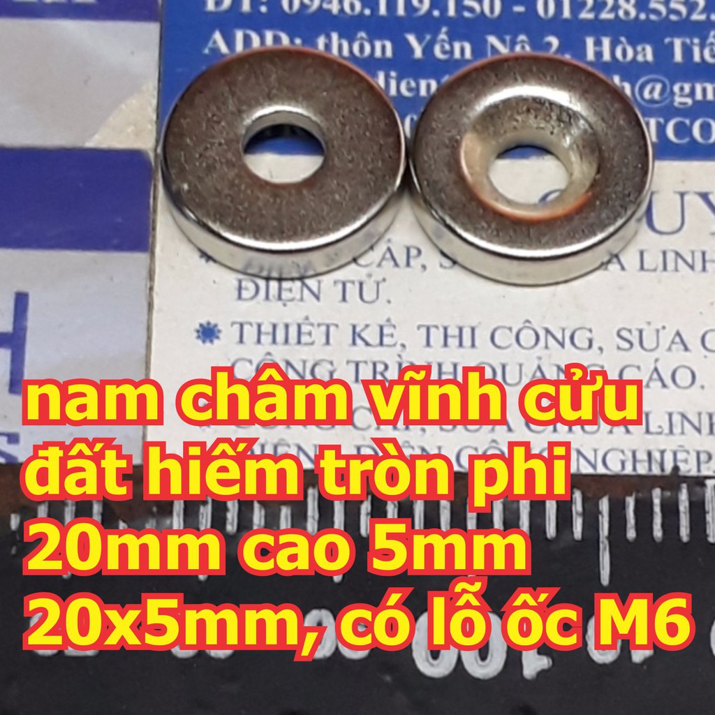 Máy tính & Laptop > Linh Kiện Máy Tính > Khác || 2 cái nam châm vĩnh cửu, nam châm đất hiếm tròn phi 20mm cao 5mm 20x5mm, có lỗ ốc M6 kde6082Còn hàng