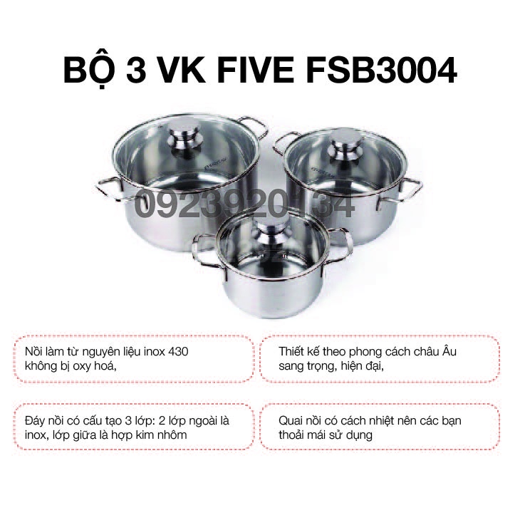 Giới thiệu Bộ 3 nồi VK FIVESTAR FSB3004