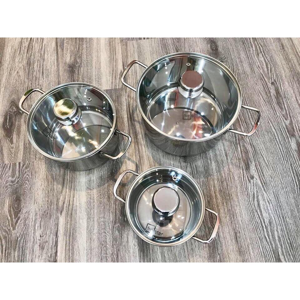 Nhà cửa & Đời sống > Dụng cụ nhà bếp > Nồi || Bộ 3 nồi Inox Fivestar nắp kínhCòn hàng