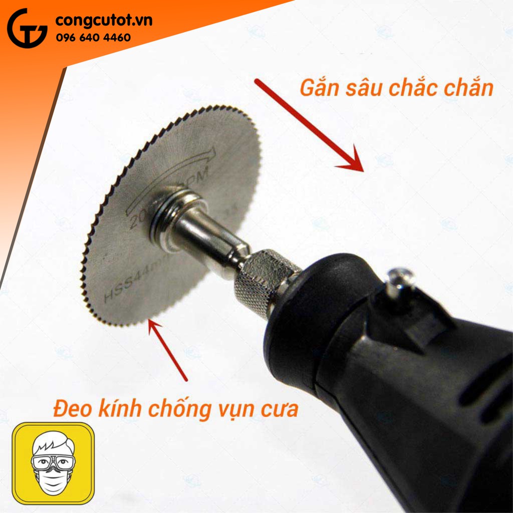 Nếu bạn ham thích mỹ nghệ hoặc DIY thì chắc bạn cần một công cụ cắt nhỏ, với bộ 6 đĩa cưa mini đường kính chỉ từ 22mm đến 50 mm nối với máy khoan, máy mài khắc là bạn đã có thể dùng để cắt gỗ, nhựa, nhôm, mạch in và một số vật liệu có độ cứng không cao khác. Các đĩa cưa mini được làm từ thép gió HSS và có thê chịu được tốc độ vòng quay đến 20000 vòng phút.Bộ 6 lưỡi cưa: 22, 25, 32, 35, 44, 50 (mm).