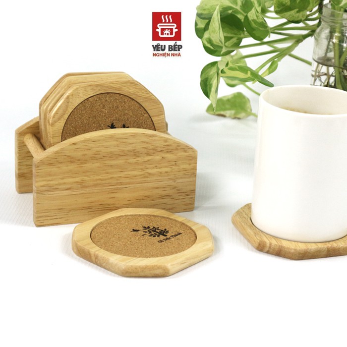 - Được làm từ gỗ cao su, bề mặt miếng lót được thiết kế các đường vân nổi để tạo ma sát với đế ly.