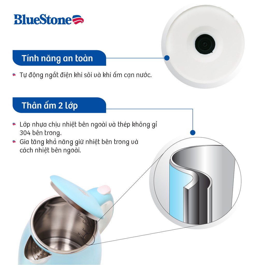 [Mã ELHAMS5 giảm 6% đơn 300K] Ấm Đun Siêu Tốc Bluestone 1.7 lít KTB-3458 , Công Suất 2000W , Bảo Hành Chính Hãng 2 Năm