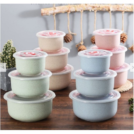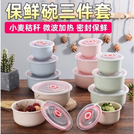 Bộ ba bát lúa mạch nắp hút chân không - Bộ 3 bát sứ hút chân không để tủ lạnh tiện lợi - 00433