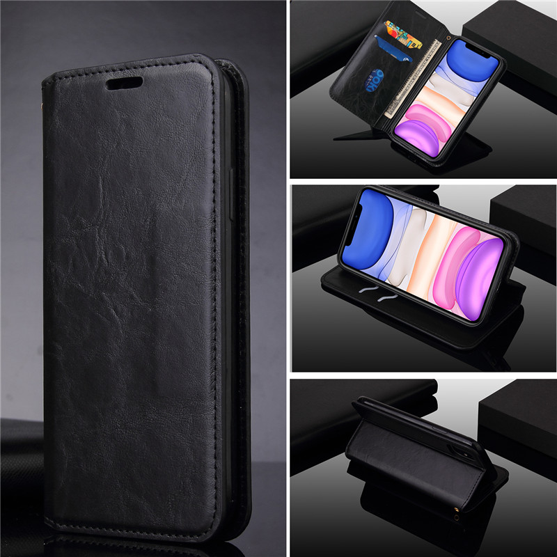 💖[style]: Business Magnetic attraction Crazy Horse pattern Flap Supportable Wallet Card slot Mobile phone case leather case