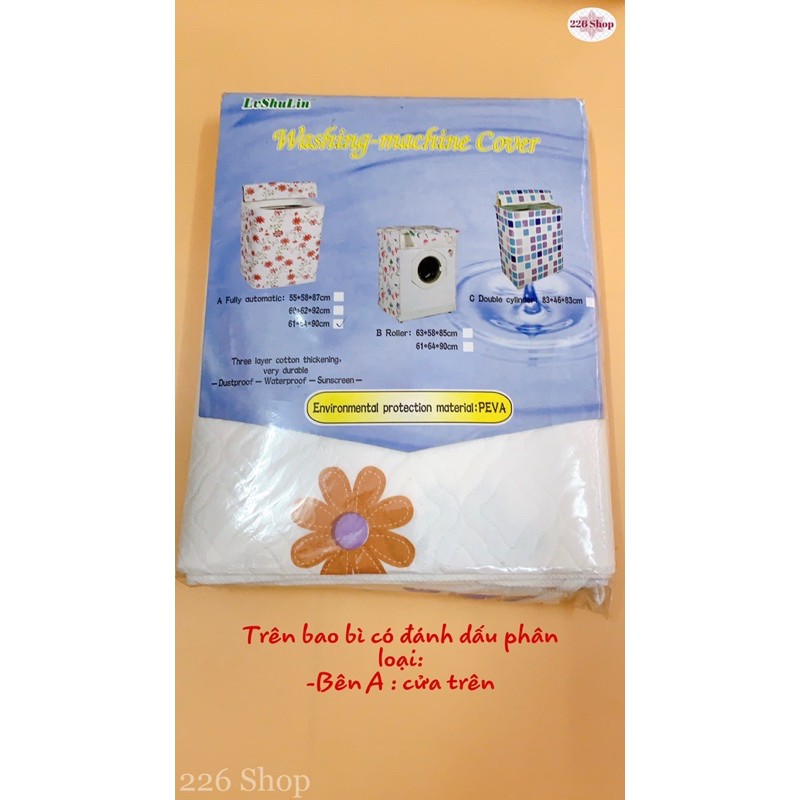 - Phù Hợp Với Các Loại Máy Giặt Cửa Ngang từ 7-9kg.Vỏ bọc bảo vệ máy giặt loại dùng cho các dòng máy từ 7.5- 9.5kg loại dày độ bền cao, phủ kín thân máy và nắp máy.