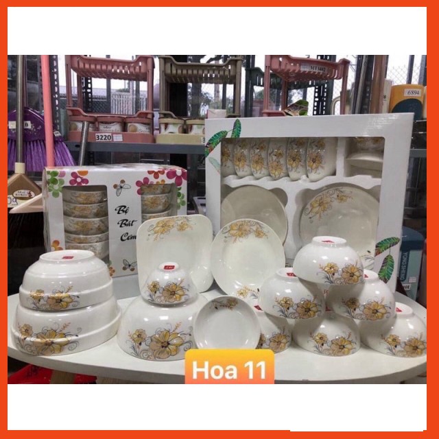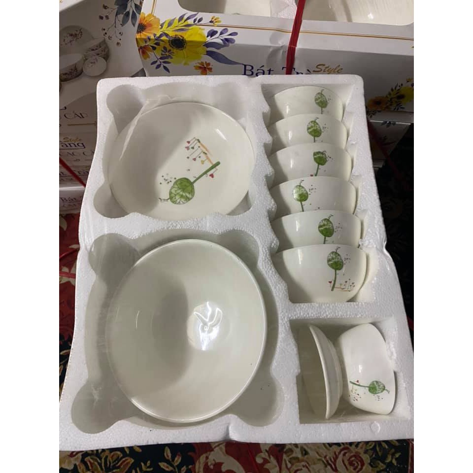- Bộ sản phẩm gồm : 6 bát ăn cơm, 1 bát tô để canh, 1 đĩa tròn to, 1 bát nhỏ để nước chấm, 1 đĩa nhỏ để muối.