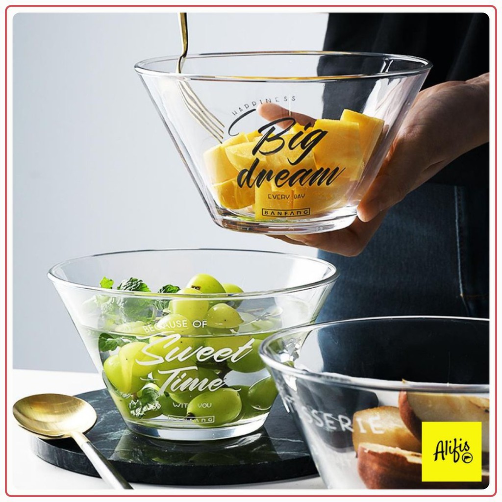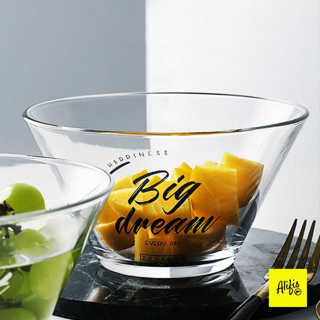 - Thiết kế hiện đại sang trọng theo phong cách Châu Âu, bát thủy tinh thích hợp cho bạn bày các món salad, hoa quả, rau củ…