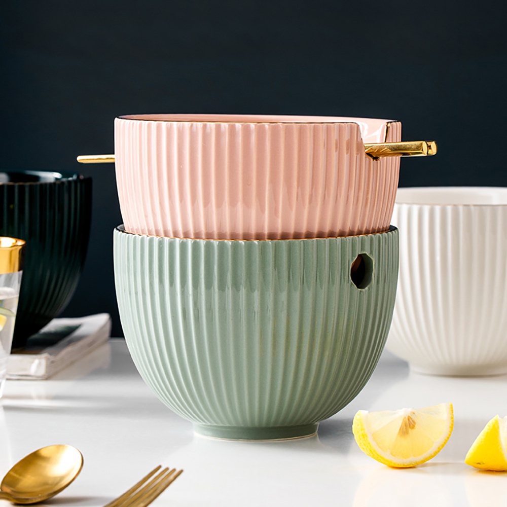 Bát tô ăn mì sứ có chỗ để đũa dễ thương phong cách Hàn Quốc - VS230