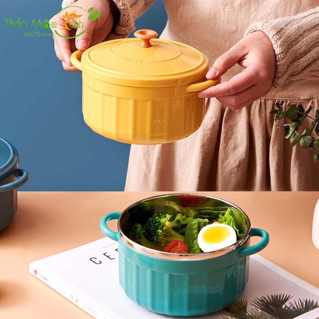 Bát úp mì - Bát ăn mì tôm inox 2 lớp cách nhiệt hình chiếc nồi có nắp đậy-----------------------------------------