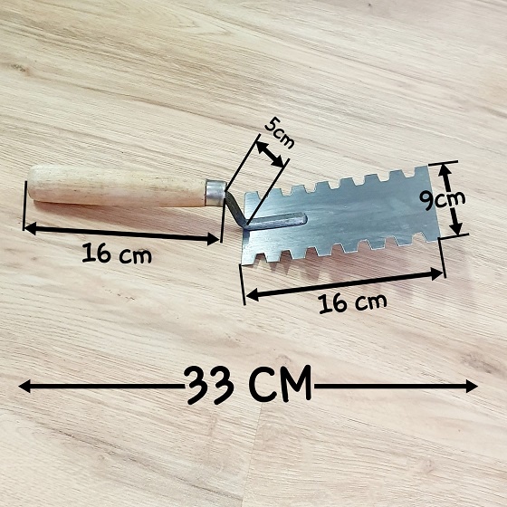 Nhà cửa & Đời sống > Dụng cụ & Thiết bị tiện ích > Dụng cụ > Hộp dụng cụ cầm tay || Bay Xây Dựng Rãnh Răng Cưa Hình Thang Lớn 12x10x15mm 2 Cạnh Song Song - Lưỡi Thép Chữ Nhật 90x160mm Cán Gỗ Cứng CápCòn hàng