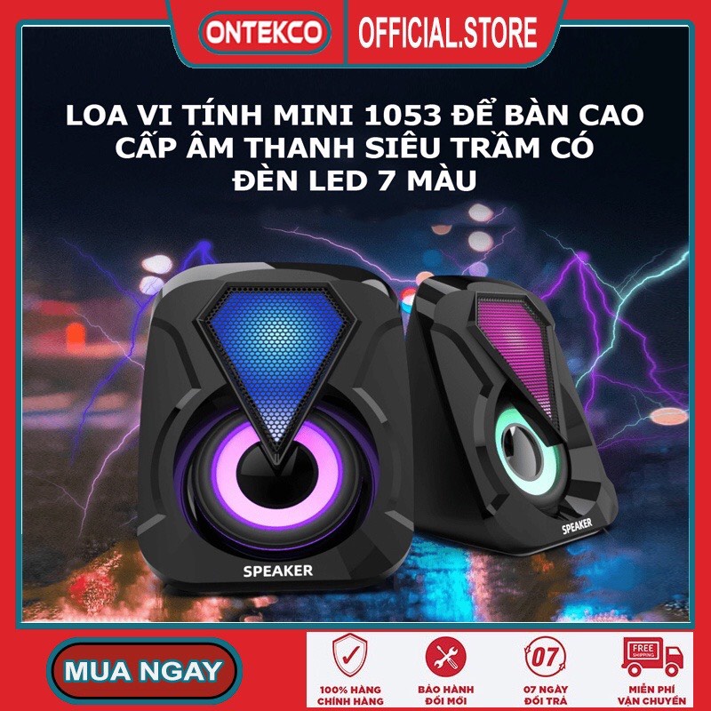 [BH 12 THÁNG] Bộ 02 Loa vi tính-loa máy tính- oa laptop mini 1053 để bàn cao cấp âm thanh siêu trầm có đèn led 7 màu