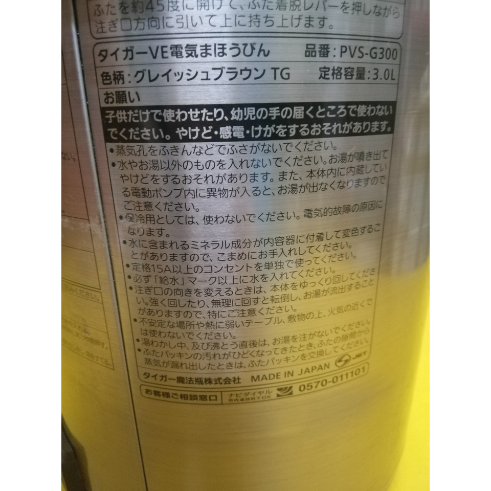 Bình thủy nội địa Nhật Tiger PVS-G (3.0L) (07112) có bơm tay, VE* Thông tin về sản phẩm bình thủy nội địa Nhật.