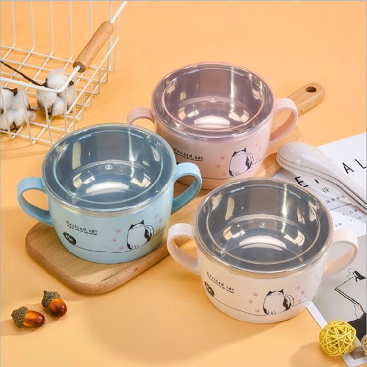 Ca Ăn Mì 2 Lớp Ruột Inox Họa Tiết Ngộ Ngĩnh S8, Tô ăn mỳ giữ nhiệt xinh xắn nhiều mẫu mã