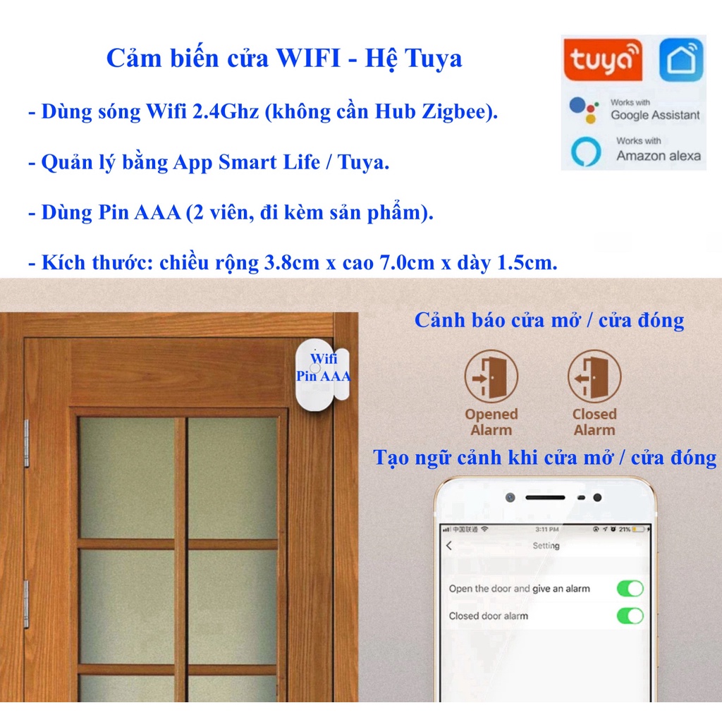 Có các loại cảm biến cửa tuỳ chọn như sauCảm biến cửa Tuya, kết nối Wifi