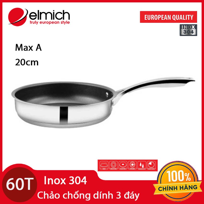 Nhà cửa & Đời sống > Dụng cụ nhà bếp > Chảo || Chảo chống dính 3 đáy inox 304 cao cấp 16cm/20cm Elmich Max-A EL376x dùng bếp từ - Bảo hành 12 tháng chính hãngCòn hàng