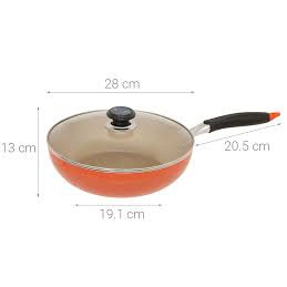 ✔ Chảo chống dính đường kính 28 cm, thành chảo cao chiên xào tiện lợi.✔ Chất liệu hợp kim nhôm phủ chống dính ceramic bền bỉ, nấu an toàn.