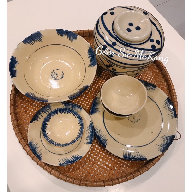 Bộ chén dĩa xưa gốm sứ phong cách hoài cỗ gốm trang trí