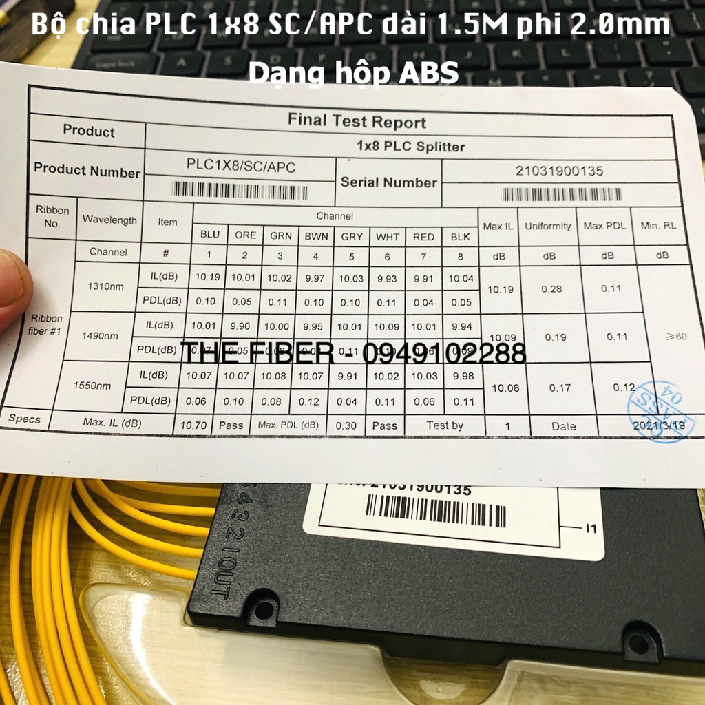 Máy tính & Laptop > Thiết Bị Mạng > Bộ chia mạng || Bộ chia quang dạng hộp ABS PLC 1x8 SC/APC dài 1.5M phi 2.0mmCòn hàng