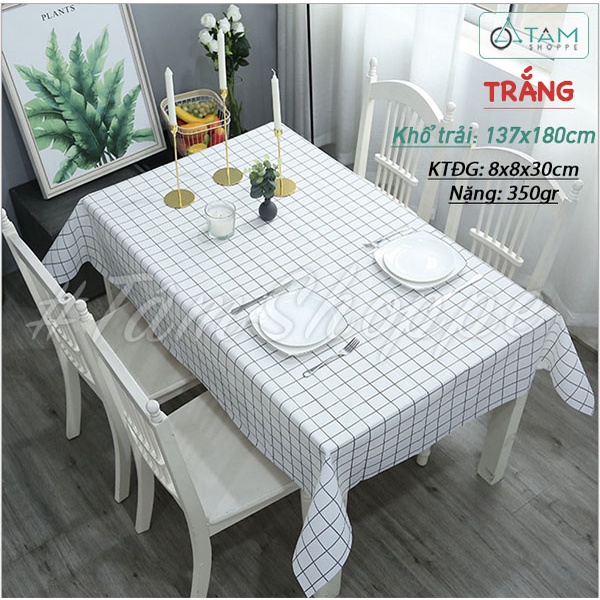 Khăn trải bàn ăn họa tiết caro đơn giản Plastic chống thấm 137x180cm trải bàn đẹp mắt. Khăn trải bàn không chỉ giúp giữ đồ ăn khỏi vấy bẩn lên mặt bàn. Mà còn có tác dụng trang trí, làm bàn ăn trở nên thu hút, hấp dẫn hơn...MÔ TẢ SP: