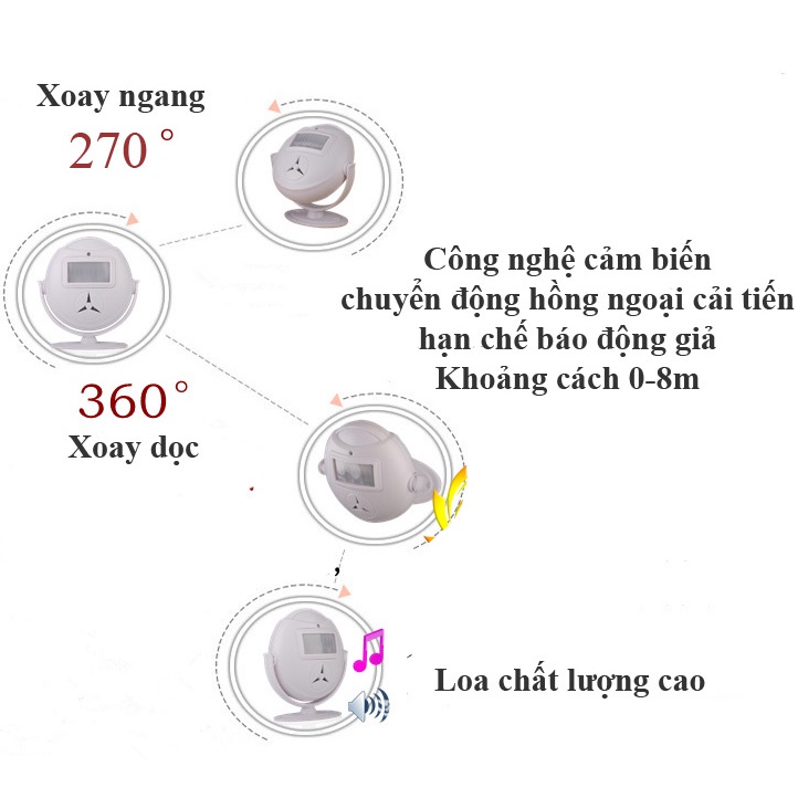 – Có thể tự lựa chọn 1 trong 32 âm thanh báo hiệu: Một đoạn nhạc không lời, câu chào khách hoặc tiếng còi hú báo trộm….
