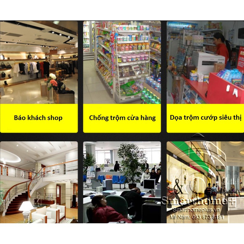 Có hình giống camera dọa trộm tắt mở báo động dễ dàng, khi nào muốn sử dụng chỉ việc nhấn nút và tắt đi không sử dụng nữa mà không cần phải tới tận ổ điện. Ngoài ra, remote dùng để chuyển đổi chế độ đang sử dụng từ báo động sang báo khách hoặc ngược lại.Dùng gắn trên các vị trí như tường, cột, các nơi có người thường xuyên ra vào, hoặc nơi trộm dễ dàng đột nhập vào khu vực nào đó trong nhà hoặc công ty, nhà xưởng hay bất cứ khu vực nào chỉ cần gắn chuông chống trộm báo khách hồng ngoại là trộm bị phát hiện ngay tức khắc.