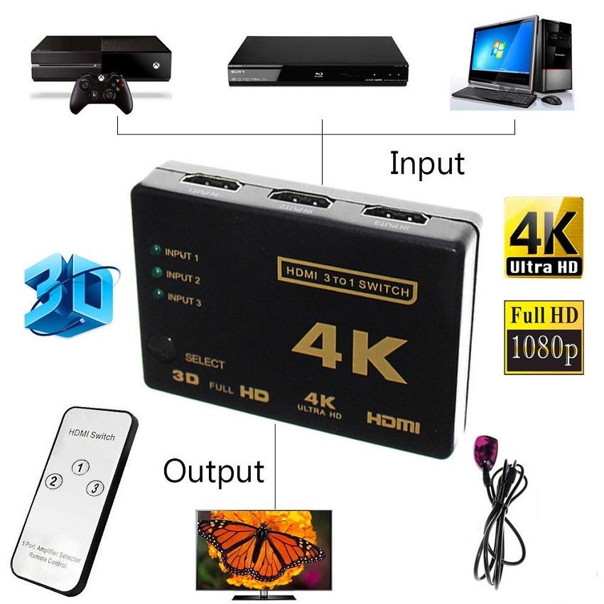 Bộ chuyển đổi Switch HDMI 4k 3x1 3 ngõ vào 1 ngõ ra cổng HDMI xuất LCD tivi
