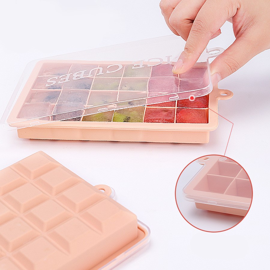 [CÓ NẮP] Khay silicon làm đá làm thạch đựng đồ hình vuông