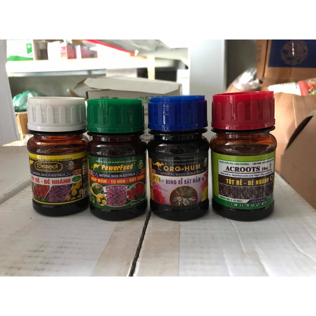 Combo bộ 4 Kích rễ - Kích chồi - Dưỡng hoa - Điều hòa sinh trưởng - Seasol - Org Hum - Powerfeed - Acroots(Nhập khẩu Úc)