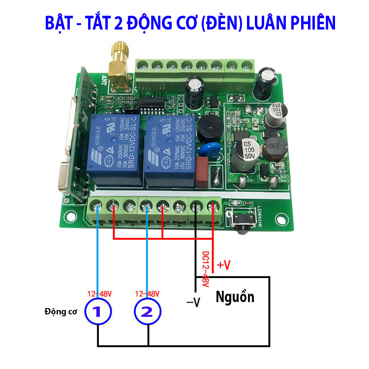 Giới thiệu Công tắc điều khiển đảo chiều động cơ DC12-48V có hành trình V5_Tần số 315Mhz