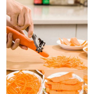 - Dụng cụ này tuyệt vời cho cả trái cây và rau quả. Lưỡi răng cưa hoàn hảo cho gọt các loại quả có da mềm như xoài, cà chua, kiwi... Lưỡi thái sợi rất nhanh chóng và dễ dàng để cắt dải hoặc thái sợi các loại rau như cà rốt, dưa chuột, bí xanh...Sản phẩm còn hỗ trợ một lưỡi dao bào vỏ mỏng giúp việc gọt vỏ trái cây hay rau củ trở nên dễ dàng hơn.