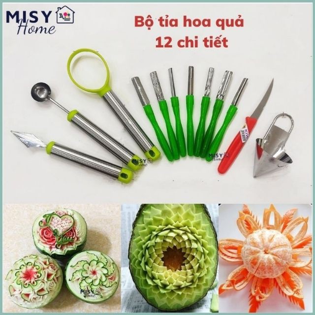 Nhà cửa & Đời sống > Dụng cụ nhà bếp > Bàn nạo, dụng cụ bào, cắt || Bộ dao tỉa hoa quả chuyên nghiệp MISY HOME 3 7 8 12 chi tiết tỉa khắc rau củ dưa hấu múc trái cây mũi nhọn cực sắc bénCòn hàng