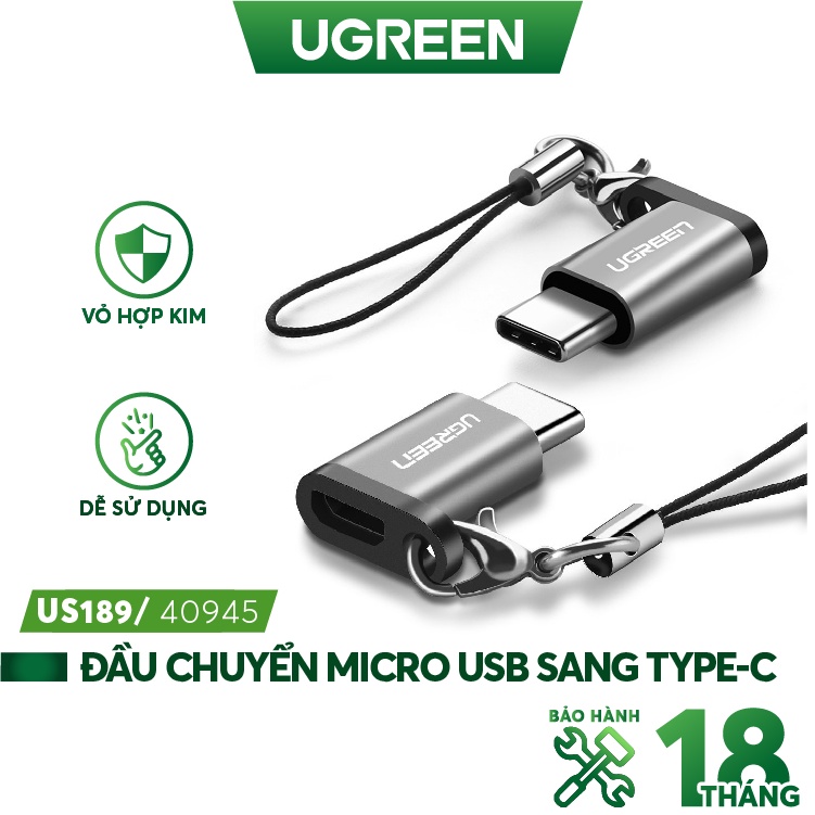 Máy tính & Laptop > Thiết Bị Lưu Trữ > USB & OTG || Đầu chuyển Micro USB cái sang USB-Type C đực vỏ nhôm UGREEN US189Còn hàng