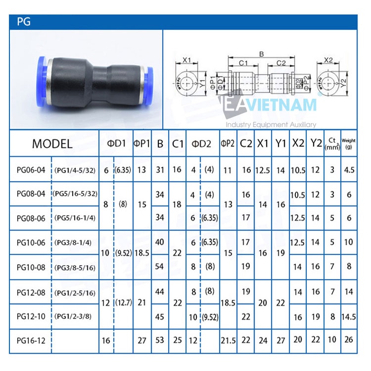 Giới thiệu Đầu nối nhanh chuyển đổi PG PG6-4 PG8-6 PG10-8 PG12-10 PG8-4 PG10-6 PG12-8 PG16-12