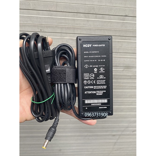 Thông số kỹ thuật trên cục sạc pin loa kéo 15V 3A chính hãng