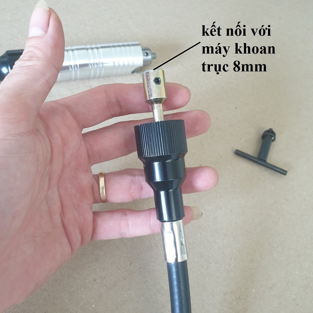 Sử dụng lắp vào đầu máy khoan, mài, khắc… để truyền chuyển động tới đầu bên kia dây dẫn giúp ta cầm nắm thao tác dễ dàng, linh hoạt hơn là phải cầm cả một cái máy khoan trên ải tiến sử dụng được cho hầu hết mọi loại máy khoan, mài, khắc: