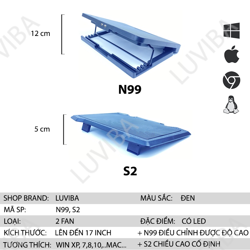 👉 Thông số kỹ thuật ĐẾ TẢN NHIỆT LAPTOP N99