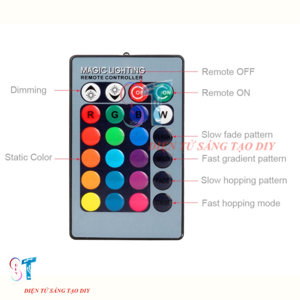 Bóng đèn LED đổi màu có điều khiển từ xa RGBLED-A60 - 5W1. Điều khiển từ xa (bộ điều khiển từ xa không dây hồng ngoại 24 phím - dễ thao tác).