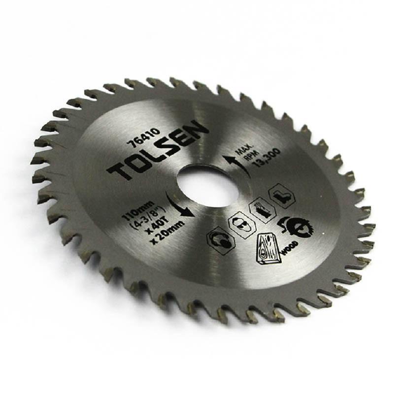 Đĩa cắt gỗ 110mm - 40T tolsen 76410Đĩa cắt gỗ 110mm tolsen mã số 76410 sản xuất từ chất liệu thép cứng cáp có đường kính 110mm với 40 răng dùng cho việc cưa gỗ vv...