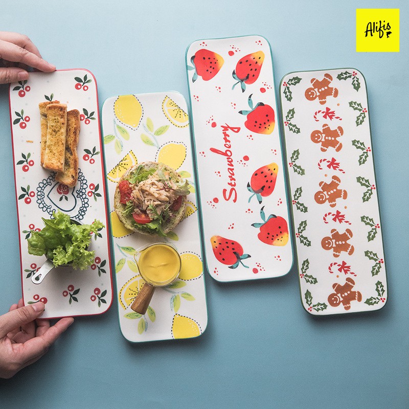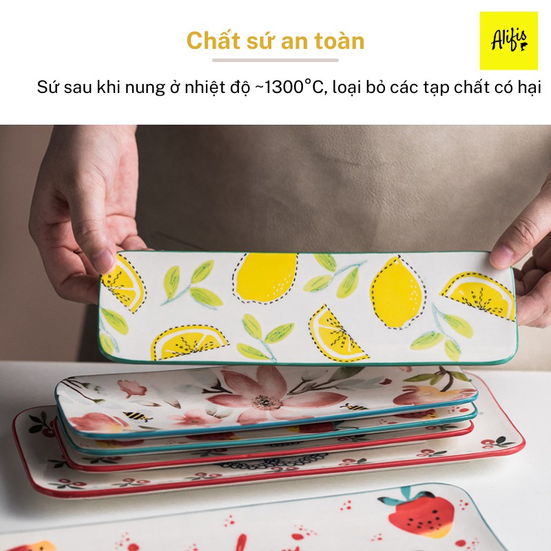Đĩa sứ, đĩa trang trí hình chữ nhật, đĩa sushi nhiều hoạ tiết xinh xắn Alifis