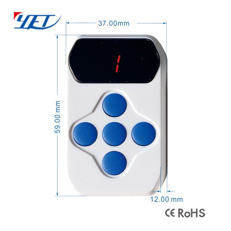 Tần số có thể sao chép: 300MHZ、303.8、306MHZ、310MHZ、315MHZ、315.5MHZ、330MHZ、360MHZ、390MHZ、418MHZ、430.5MHZ、433.42MHZ、433.92MHZ、868.35MHZ、286-361MHZ、384-400MHZ