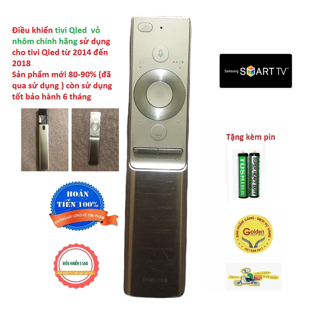 Điều khiển tivi SamSung Qled vỏ nhôm mới 80-90% chính hãng sử dụng cho các dòng tivi Qled từ 2014 đến 2018 -tặng kèm pin