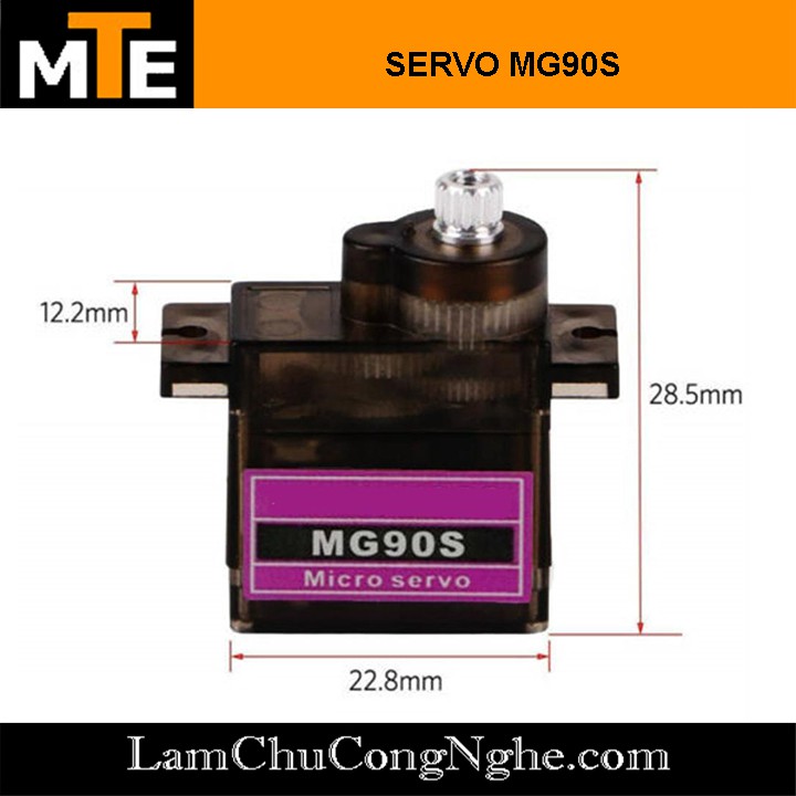 Động cơ Servo MG90S là phiên bản nâng cấp của motor Servo 9G với các bánh răng được làm bằng kim loại cho lực khéo khỏe và độ bền cao, motor có kích thước nhỏ gọn, cách điều khiển giống như các motor Servo phổ biến trên thị trường hiện nay: MG996, MG995, 9G,…Phù hợp cho nhiều ứng dụng khác nhau: Robot cánh tay máy, robot nhện, cơ cấu chuyển hướng, cơ cấu quay góc,…