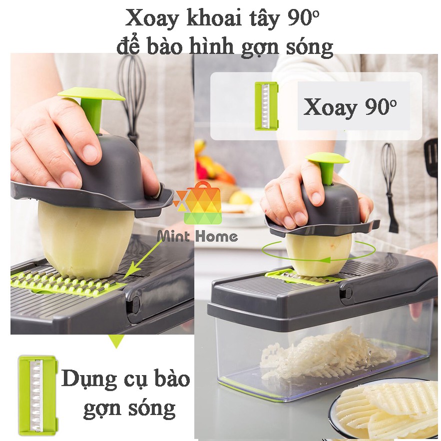 Nhà cửa & Đời sống > Dụng cụ nhà bếp > Bàn nạo, dụng cụ bào, cắt || Bộ dụng cụ hộp đồ có nắp tích hợp dao cắt thái gọt nạo bào sợi rau củ quả kiểu hạt lựu đa năng tiện lợiCòn hàng
