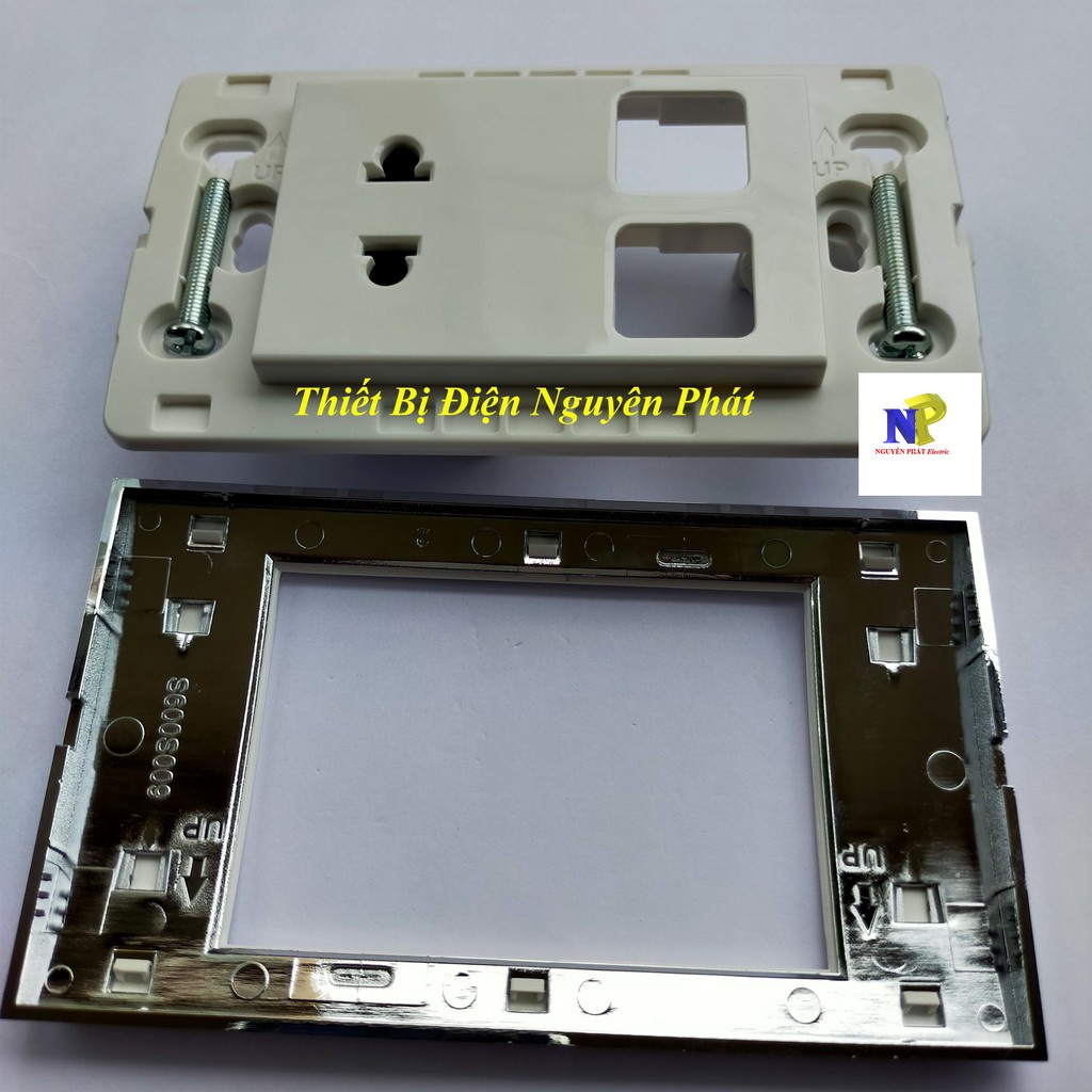 [ELITON] Ổ Cắm Đơn 2 Chấu 16A + 2 Lổ E5 Viền Mạ Crom - Hàng Cao Cấp