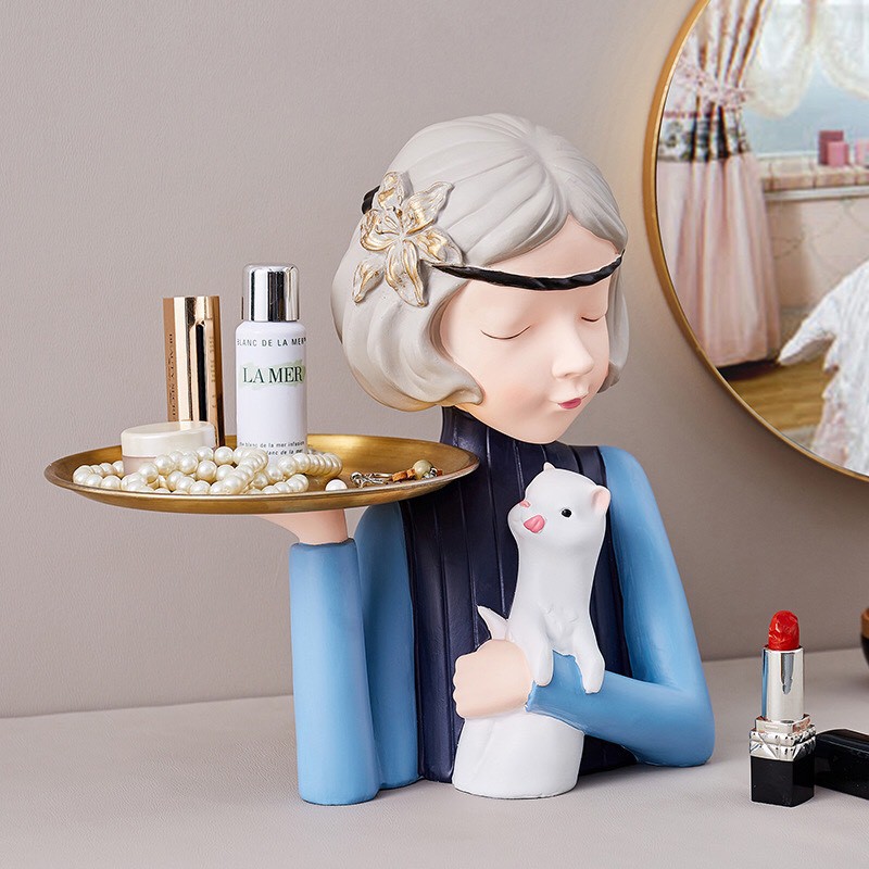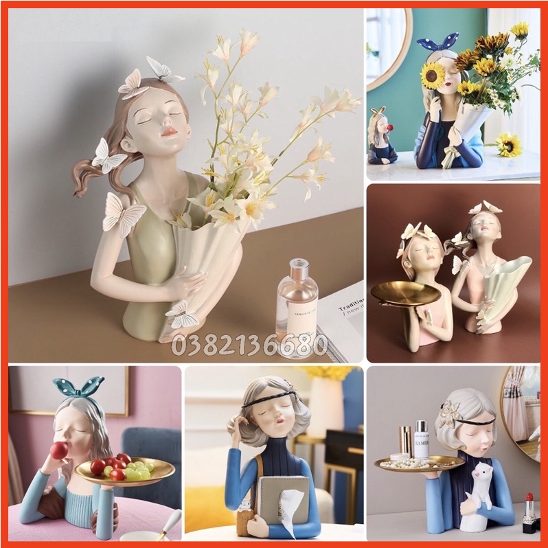 Sản phầm: Bình hoa cô gái- Cô gái cắm hoa,ôm hoa-Lọ hoa cô gái-Tượng cô gái trang trí decor-Cô Gái bê khay,đĩa