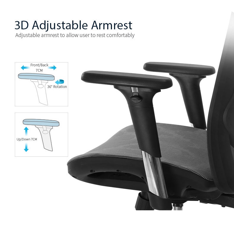 - Phần tựa lưng điều chỉnh được chiều cao và chiều ngang