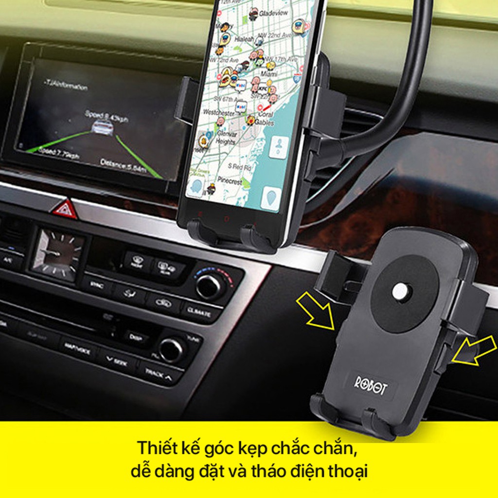 Giá Đỡ Điện Thoại Xe Ô Tô ROBOT RT-CH06 Có thể Xoay 360 độ Linh Hoạt - Chất Liệu Nhôm Và Nhựa ABS Cứng Cáp