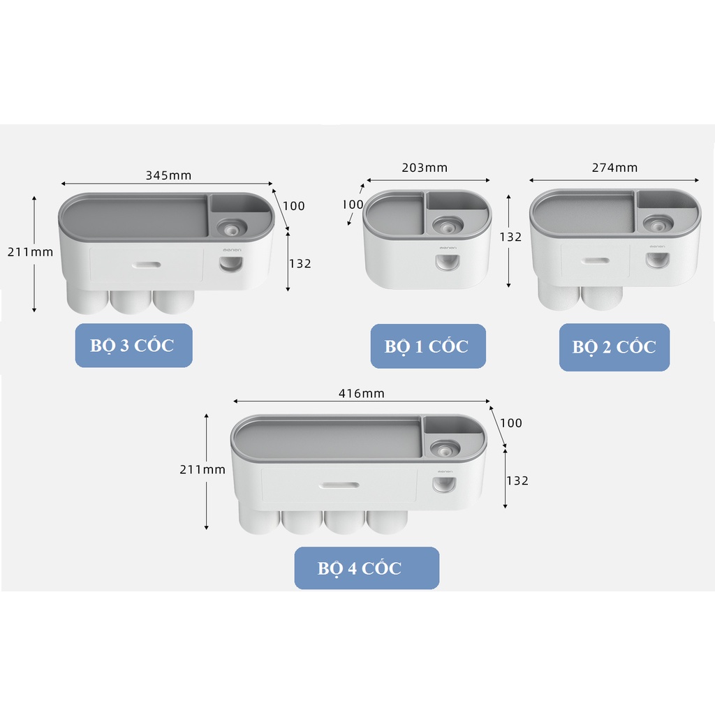 - Bộ sản phẩm gồm: ✅ Bộ giá treo bàn chải có nhả kem đánh răng + ✅ Cốc đánh răng + ✅ Miếng dán tường treo sản phẩm
